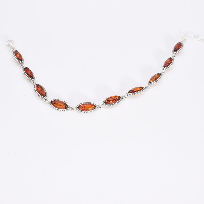 Brățara din argint 925 cu chihlimbar în formă marchiz impresionează prin eleganța liniei alungite și proporțiile echilibrate.