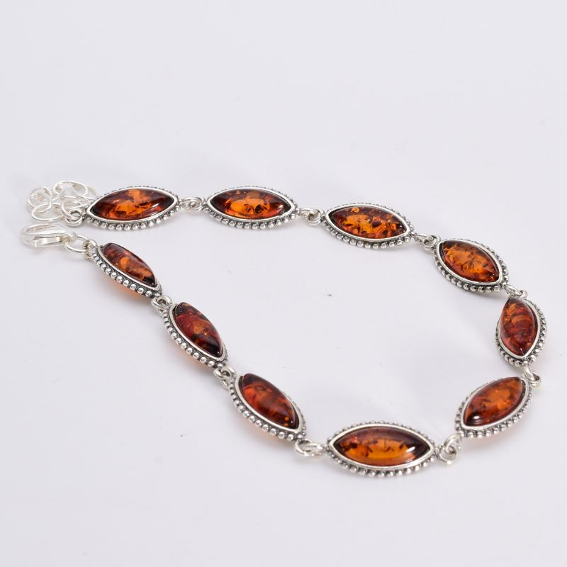 Piesa oferă prezență vizibilă pe încheietură, menținând confortul la purtare. Lungimea reglabilă între 19 și 22 cm permite adaptarea ușoară pentru o fixare sigură și estetică. Contrastul dintre strălucirea rece a argintului și textura organică a chihlimbarului creează un echilibru rafinat, transformând această brățară într-un accesoriu versatil, potrivit atât pentru ținute de zi, cât și pentru apariții elegante.