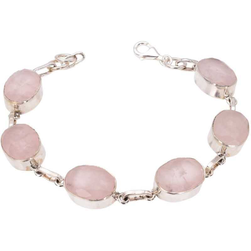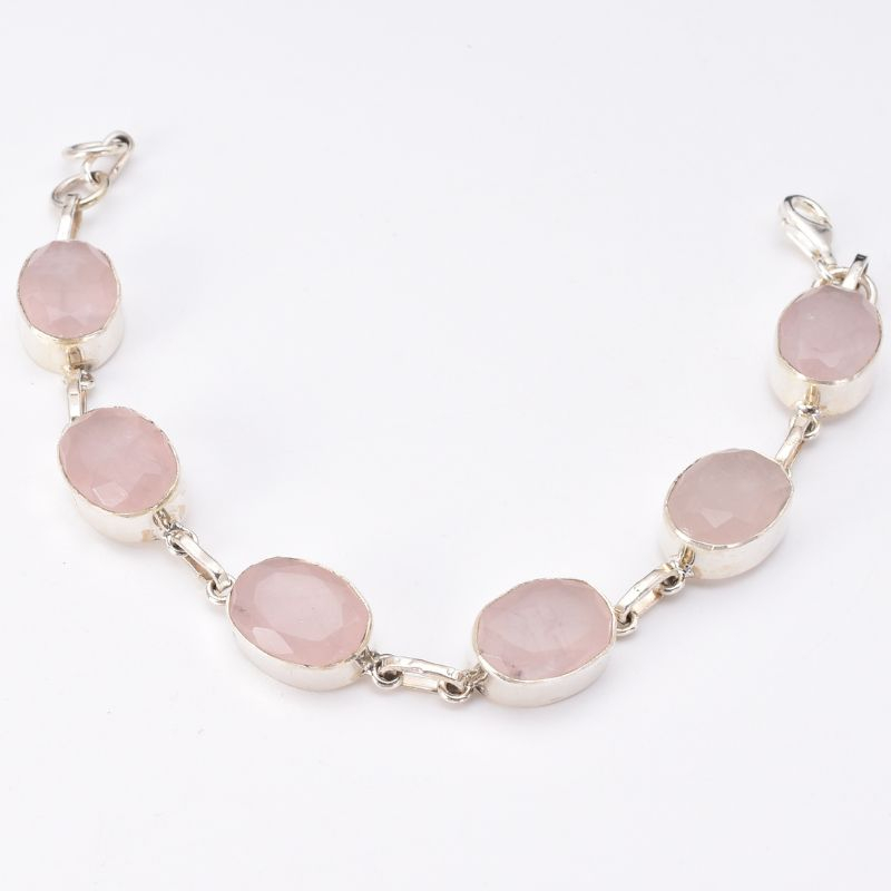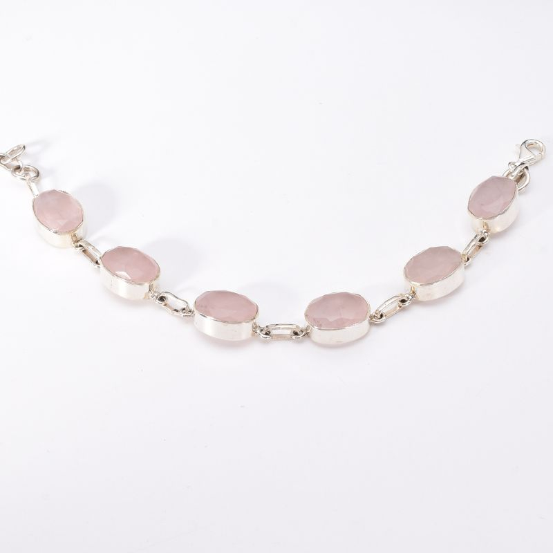 Brățară din argint cu pietre semiprețioase cuart roz fațetat, oval.