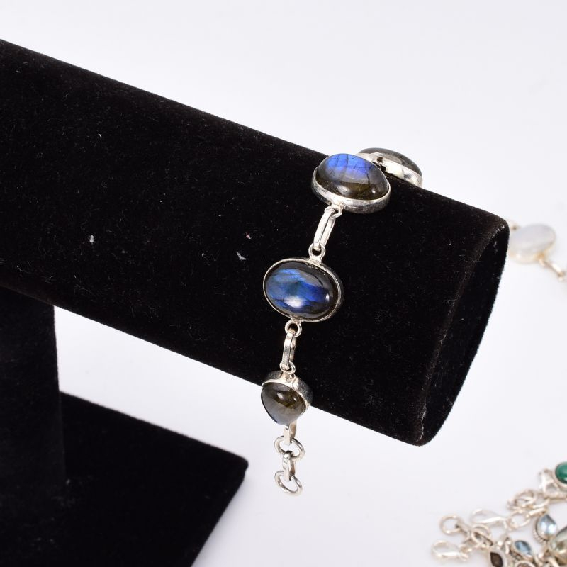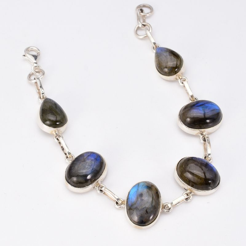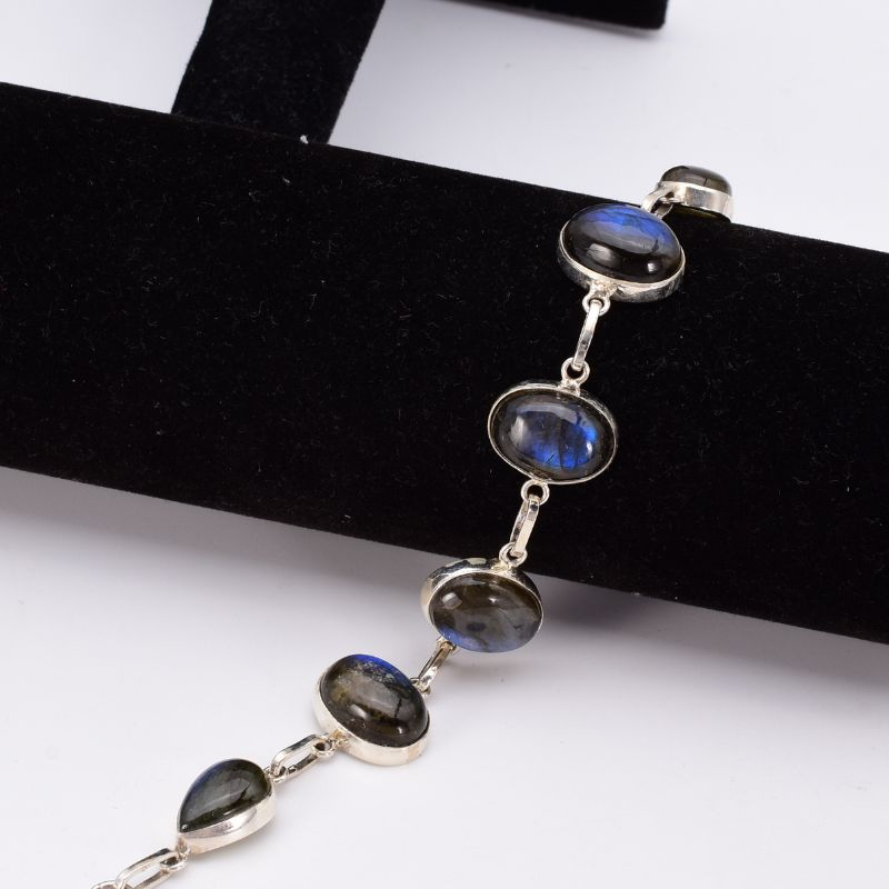 Brățară din argint cu pietre labradorit, forma ovală si pară, lucrata manual in India