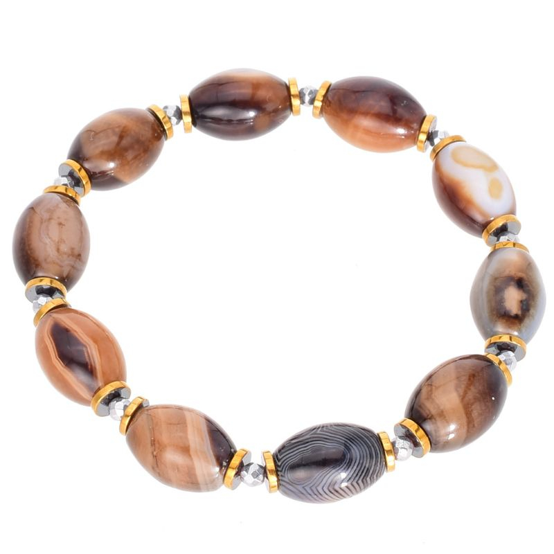 Această brățară elastică cu agat maro si elemente din hematit este combinația perfectă între naturalețea pietrelor semiprețioase și eleganța discretă a unui design minimalist.