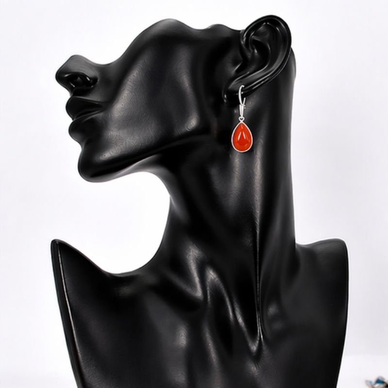 Cercei rafinați din argint cu carneol natural, realizați într-un design elegant, în formă de lacrimă, ce evidențiază frumusețea caldă și intensă a pietrei. Nuanțele de portocaliu ale carneolului oferă un aer vibrant și sofisticat, transformând acești cercei într-un accesoriu must-have.
