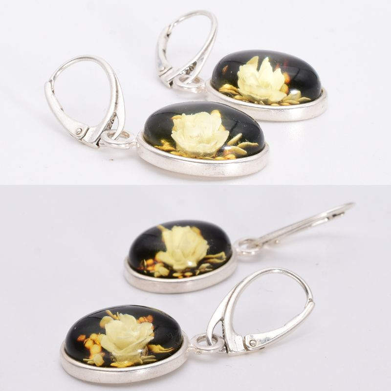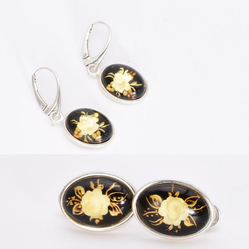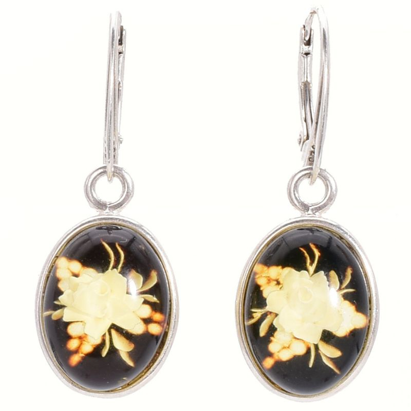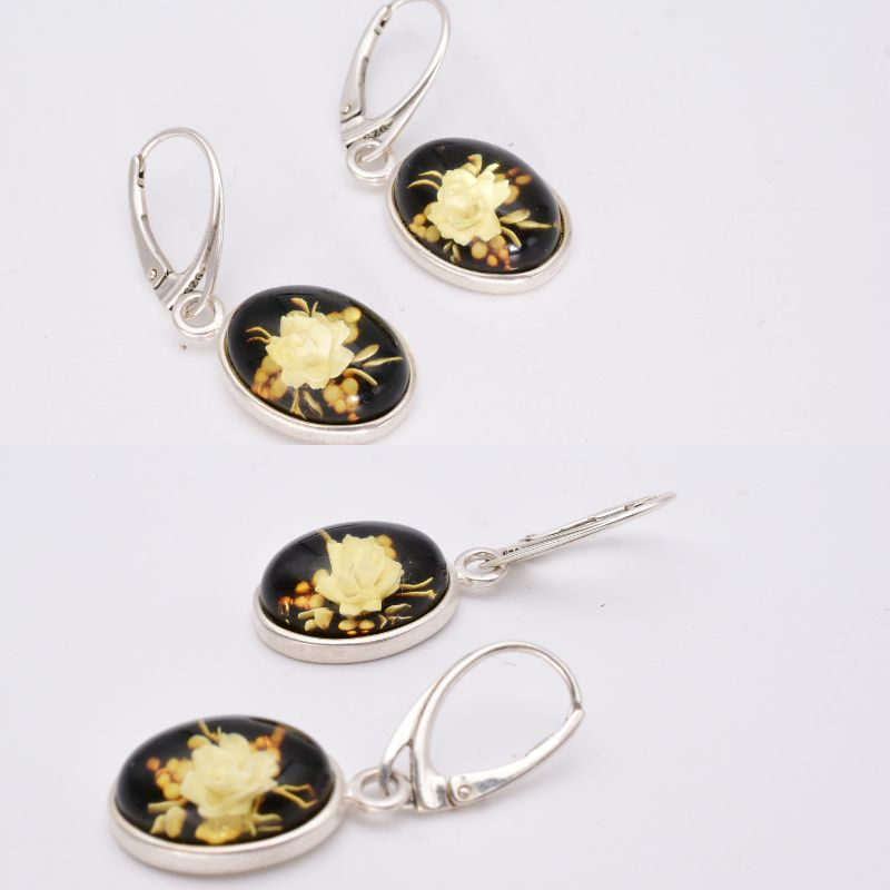 Cerceii din argint cu chihlimbar cameo „Trandafiri” aduc în prim-plan eleganța bijuteriilor clasice reinterpretate modern. Sculptura fină a trandafirilor, realizată în relief, evidențiază frumusețea naturală a chihlimbarului și contrastul cald al nuanțelor sale.