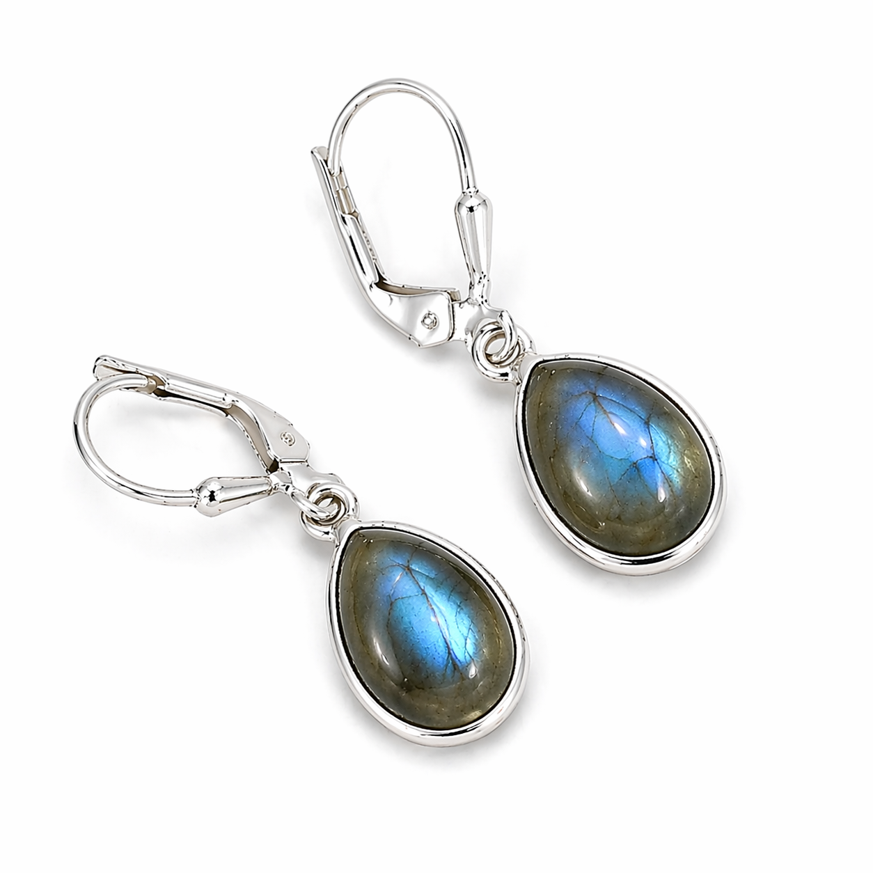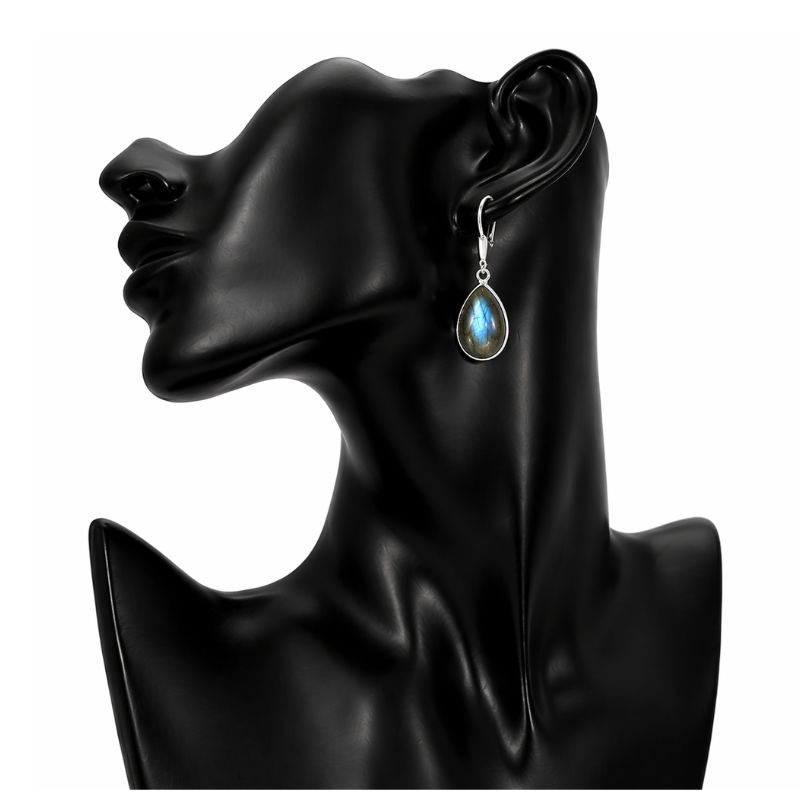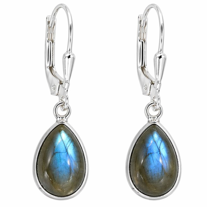 Cercei eleganți din argint cu labradorit natural, realizați în formă de picătură, ce pun în valoare frumusețea misterioasă a acestei pietre spectaculoase. Labradoritul este apreciat pentru reflexiile sale irizante în nuanțe de albastru, verde și auriu, care creează un efect vizual unic la fiecare mișcare.
