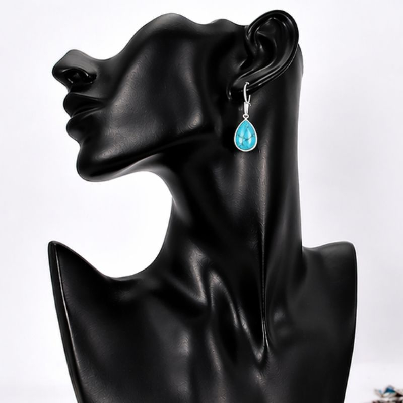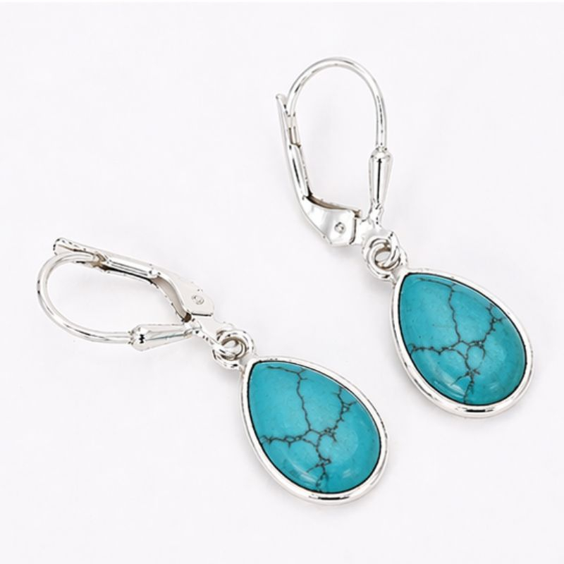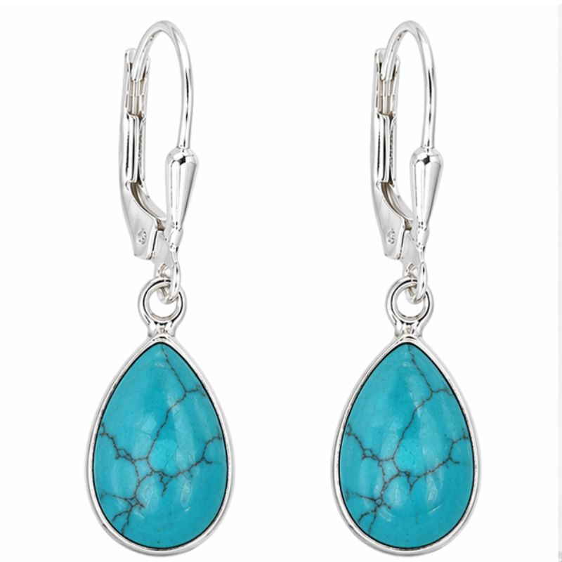 Cercei eleganți din argint cu piatră naturală de turcoaz, într-un design clasic și feminin, în formă de lacrimă. Turcoazul impresionează prin nuanțele sale vibrante de albastru cu vinișoare fine, oferind fiecărei piese un aspect unic.
