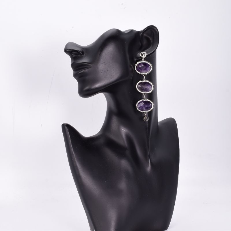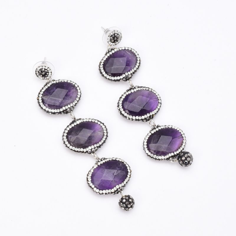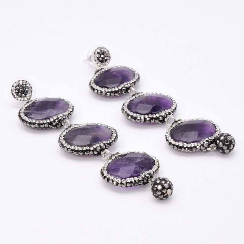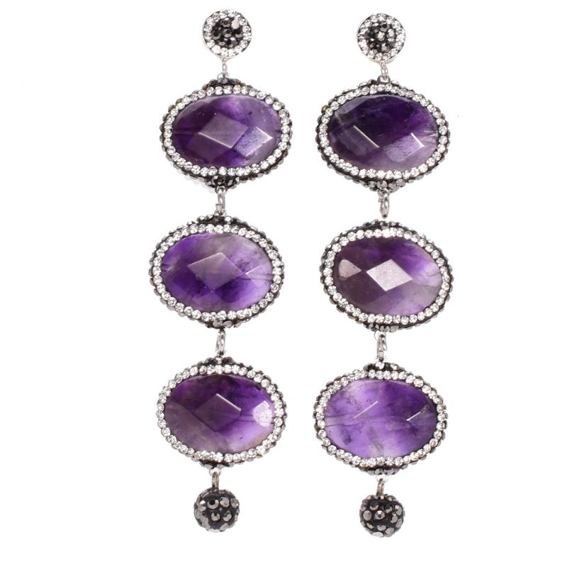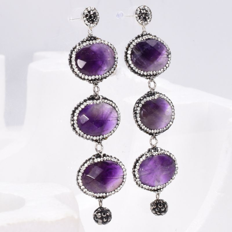 Atrage toate privirile cu acești cercei statement impunători, realizați manual în Turcia din argint 925 și decorați cu trei pietre de ametist natural.