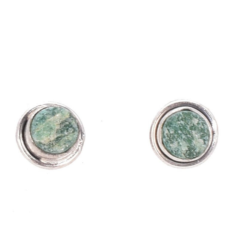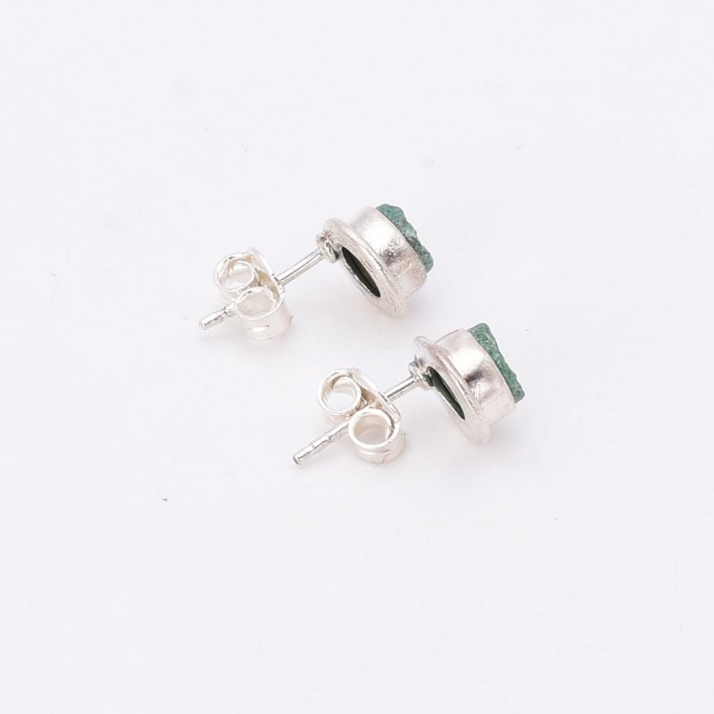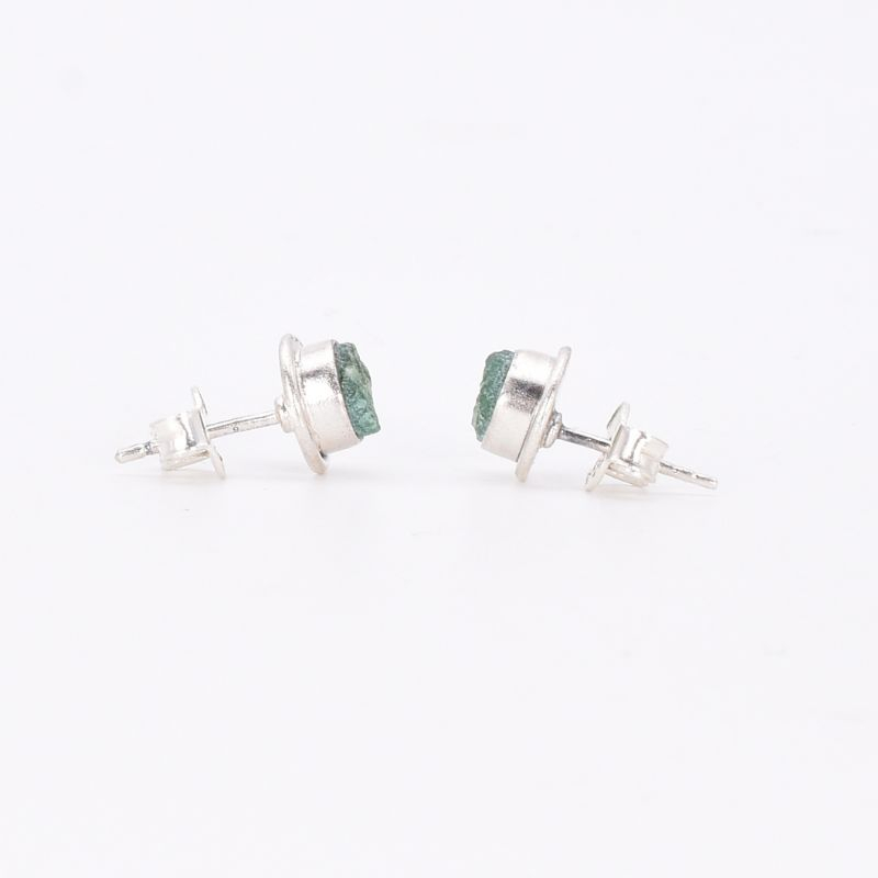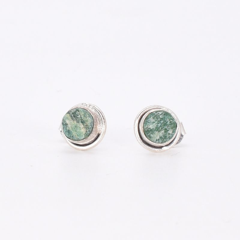 Cerceii din argint cu jad verde brut, rotund, sunt o bijuterie autentică și plină de personalitate