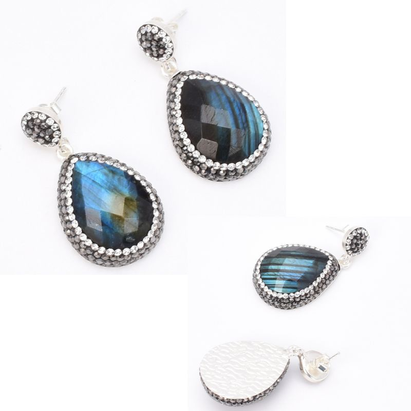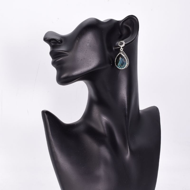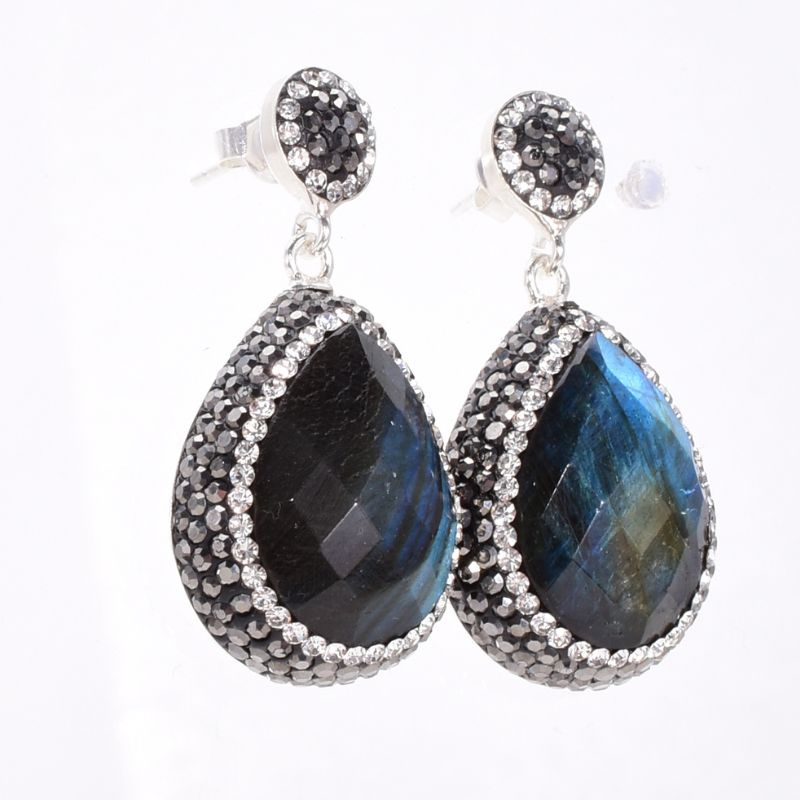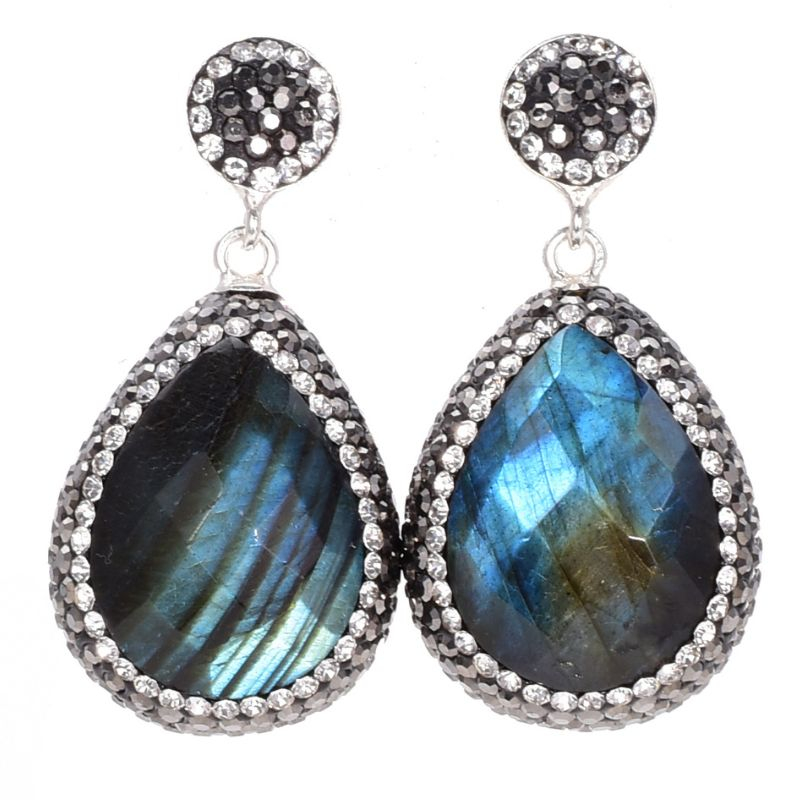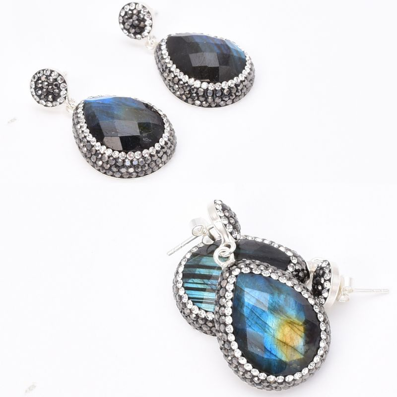 - Cercei din argint eleganți cu labradorit fațetat forma pară, hematit si CZ.