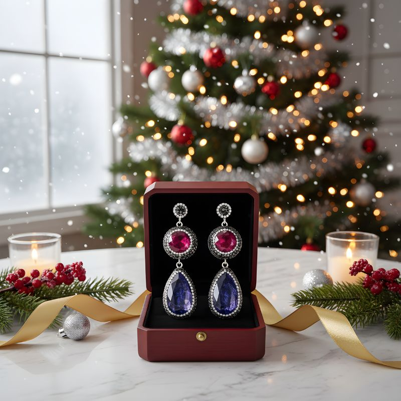 - Acești cercei din argint in stil otoman sunt o combinație perfectă între culoare, strălucire și eleganță. Rubinul, cu nuanțe profunde de roșu, safirul cu tonuri regale de albastru, hematitul cu reflexe metalice subtile și cubic zirconia se îmbină armonios într-un design rafinat.