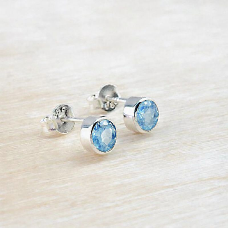 - Cerceii din argint cu topaz albastru rotund, fațetat, sunt o alegere rafinată pentru femeile care apreciază bijuteriile delicate.