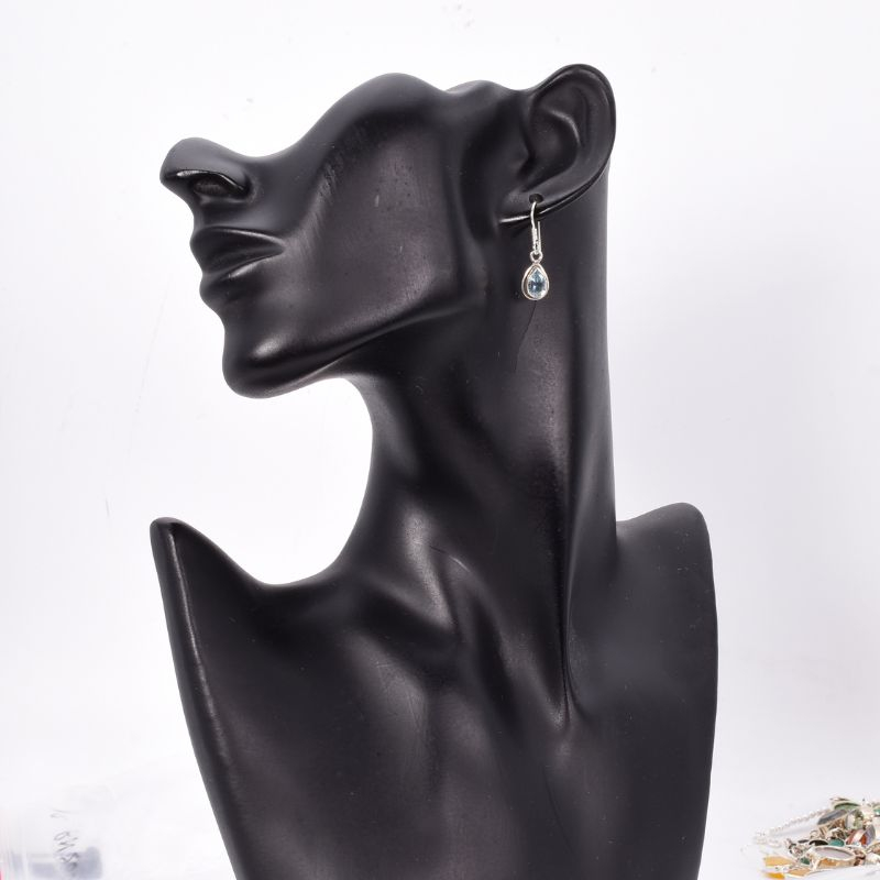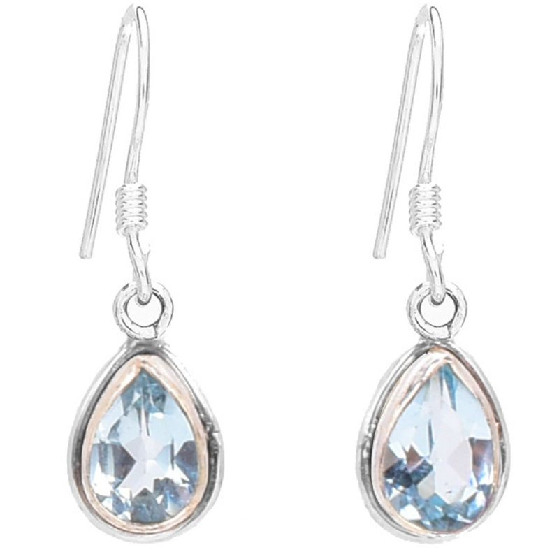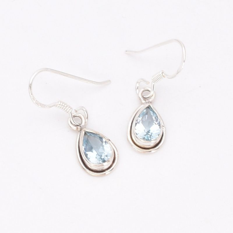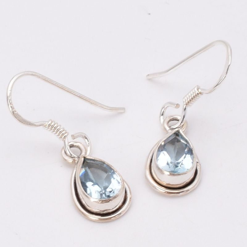 Rafinați și strălucitori, acești cercei din argint 925 sunt înfrumusețați cu topaz albastru natural, tăiat în formă de pară și fațetat pentru a surprinde lumina în reflexe limpezi și vibrante.