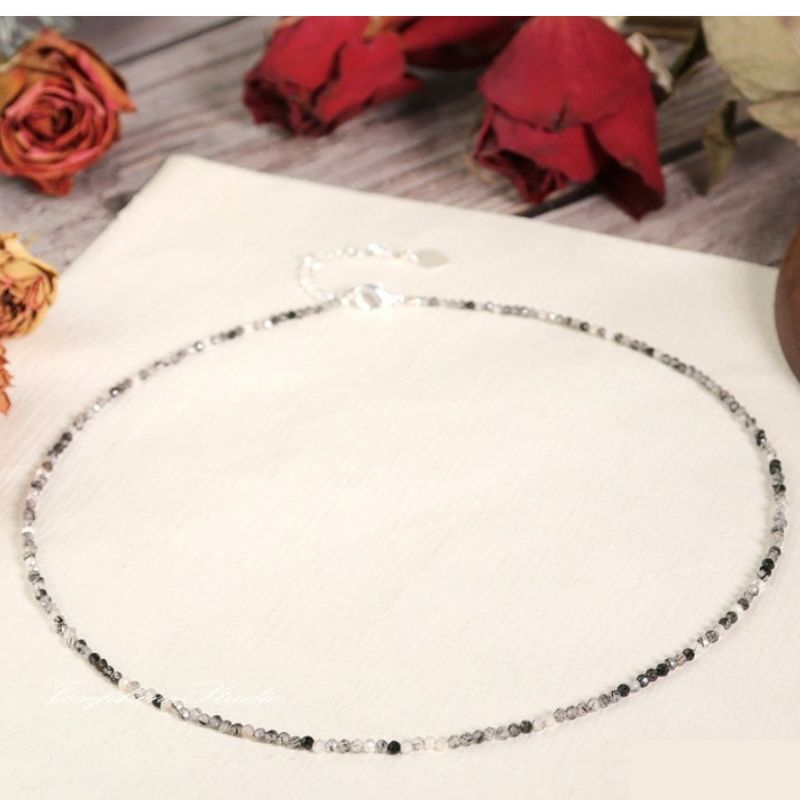 Un colier rafinat din argint, împodobit cu cuart rutil negru de 2,5 mm.