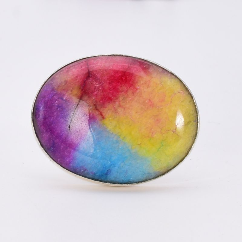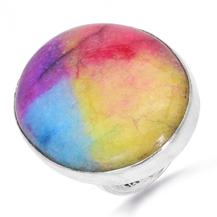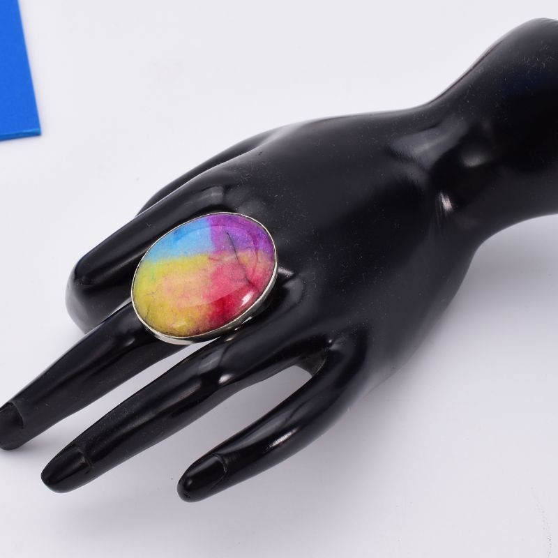 - Inel din argint cu piatra mare cuart solar curcubeu, forma ovală.