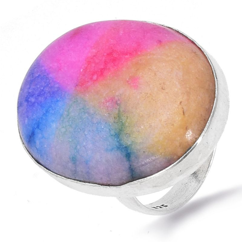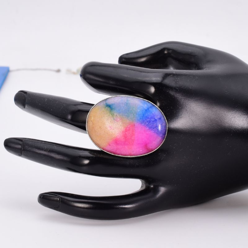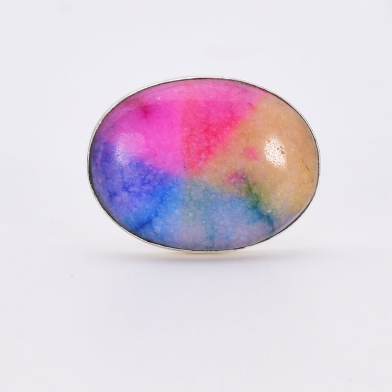- Inel din argint cu cuart solar curcubeu, forma ovală.