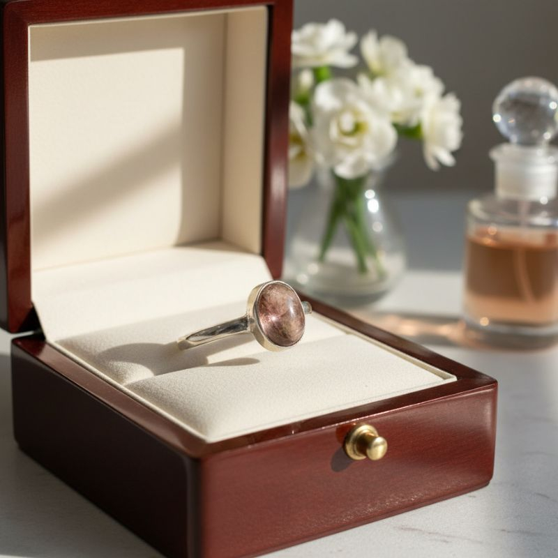 Inelul de argint cu turmalină roz oval cabochon este o bijuterie delicată și elegantă, perfectă pentru femeile care apreciază rafinamentul subtil.