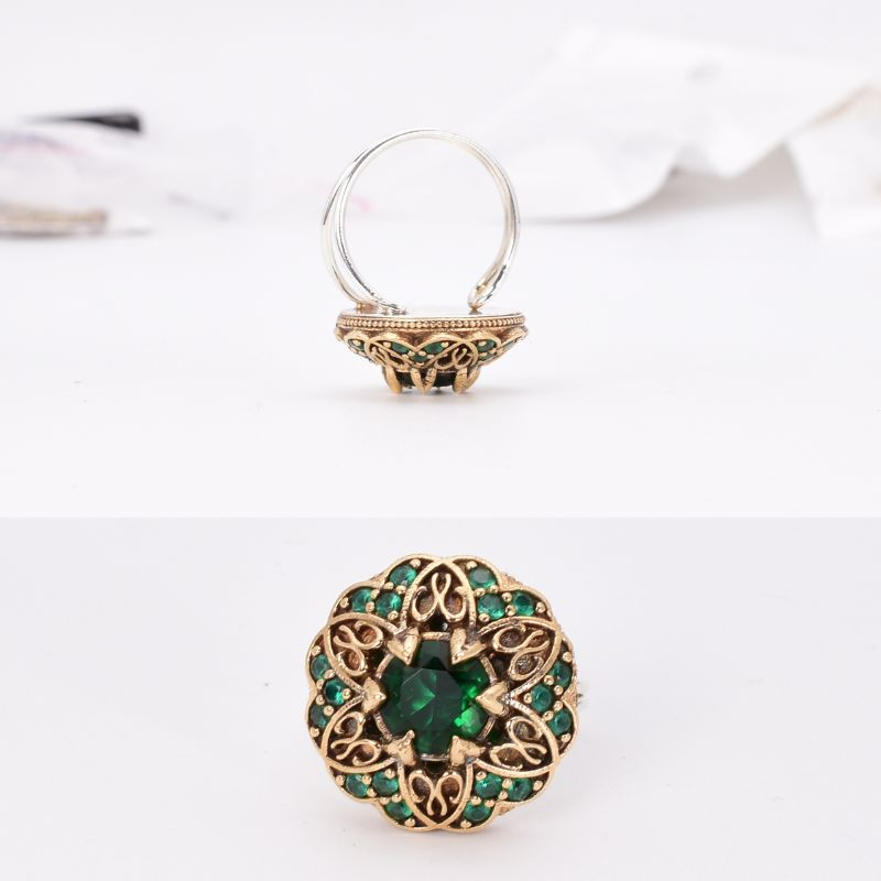 - Rafinament cu aer regal, acest inel din argint reglabil, cu design rotund, impresionează prin eleganța sa inspirată din bijuteriile orientale. Cubic zirconia verde, intens și luminos, este piesa centrală a inelului, simbol al armoniei, echilibrului și prosperității.