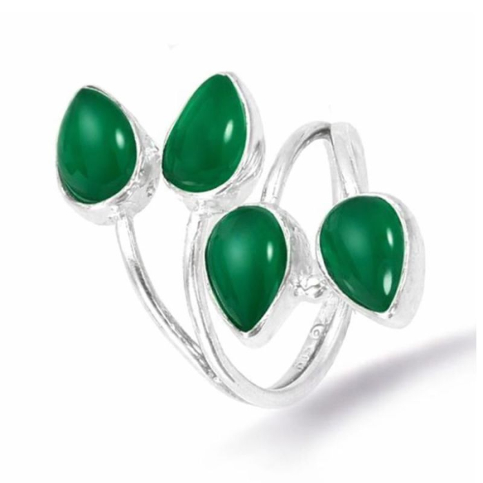 - Designul reglabil îl face ușor de potrivit pe deget, iar cele 4 pietre de onix verde adaugă un accent rafinat, cu efect vizual intens și modern. Argintul completează perfect nuanța pietrelor, rezultând un look versatil: de la casual la elegant.
