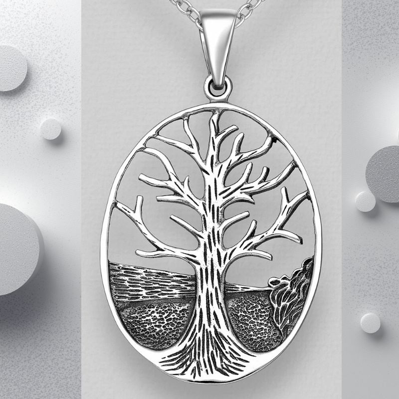 Pandantiv din argint cu Arborele Vieții - o bijuterie elegantă și simbolică, apreciată atât pentru estetica sa, cât și pentru semnificațiile profunde. Iată o descriere completă: