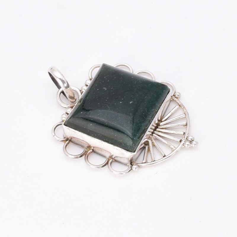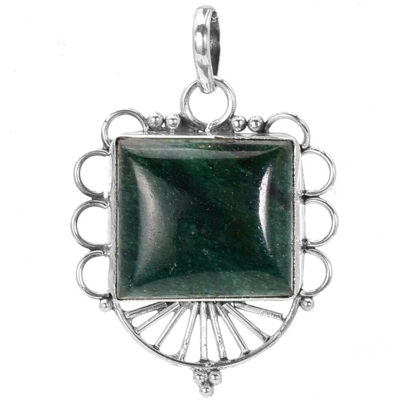 Pandantiv din argint cu piatra aventurin verde, forma dreptunghiulara.