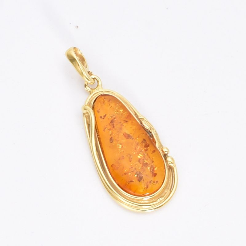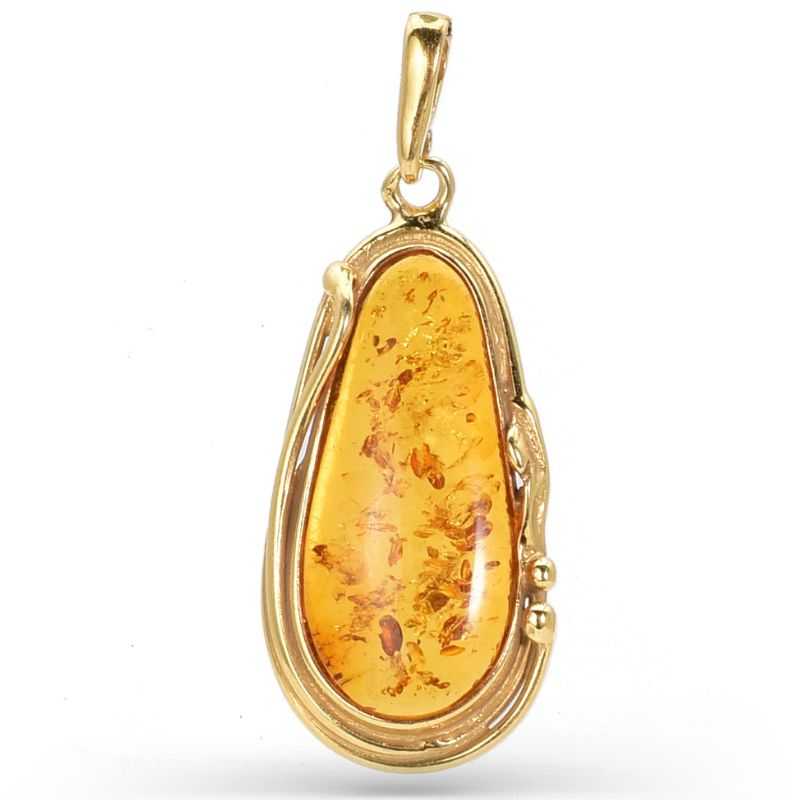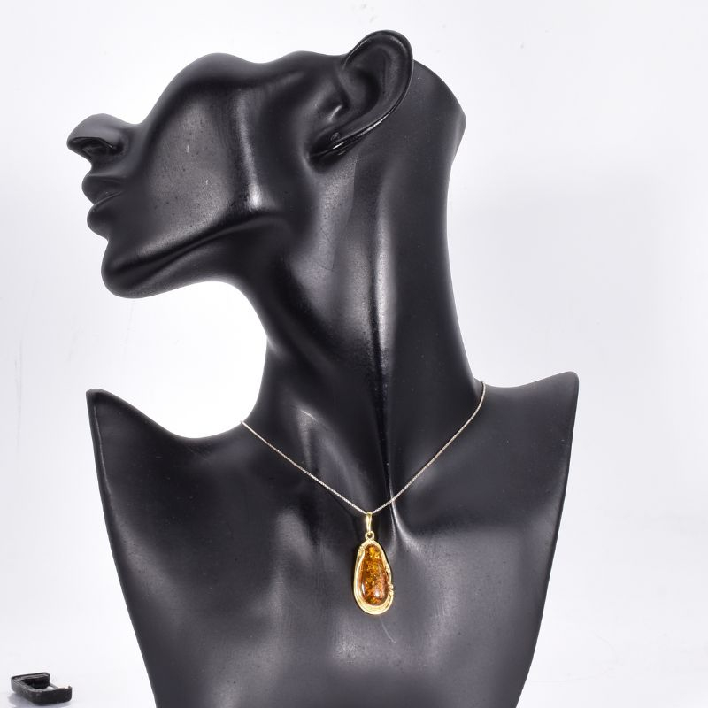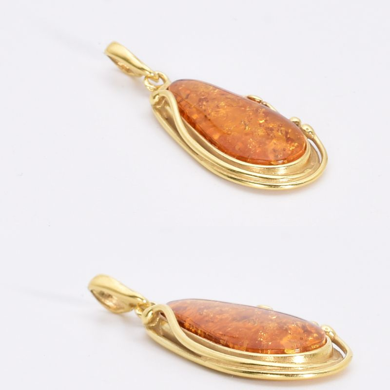 Pandantivul din argint 925 cu chihlimbar natural, finisat cu placaj din aur de 18K, este o bijuterie elegantă, care îmbină rafinamentul metalului prețios cu căldura organică a pietrei.