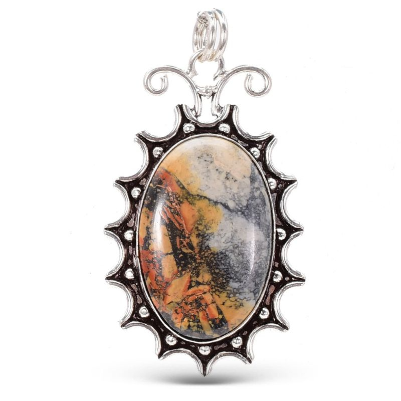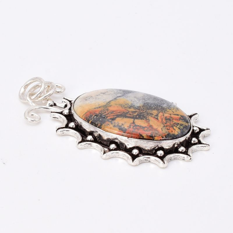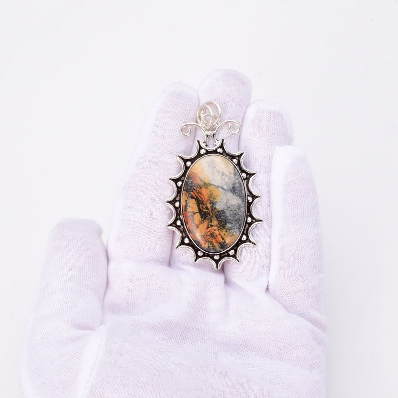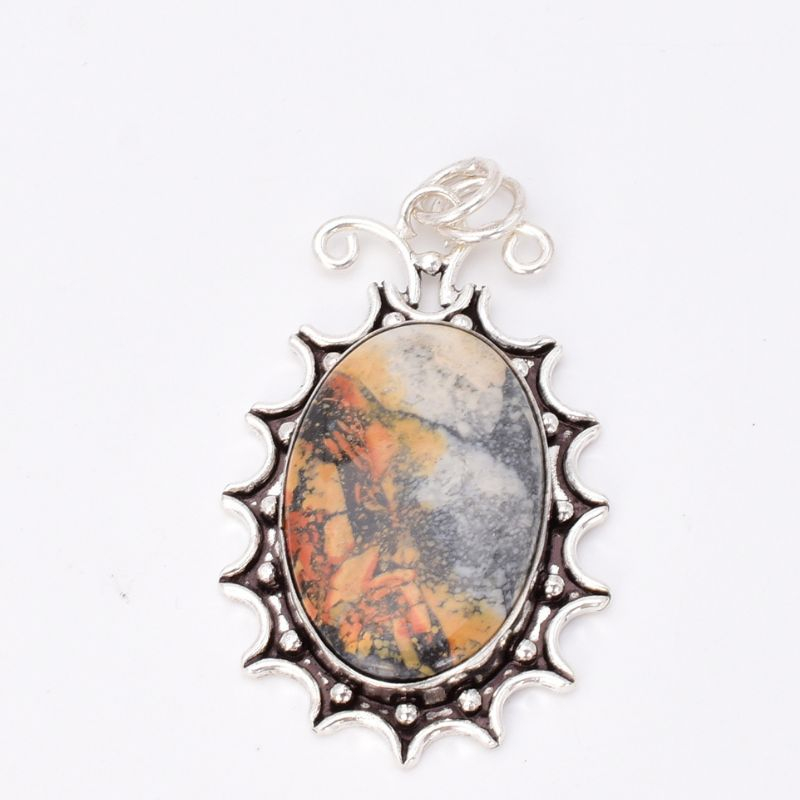 - Pandantiv cu jasp maligano din argint, model Soare, lucrat manual in India.