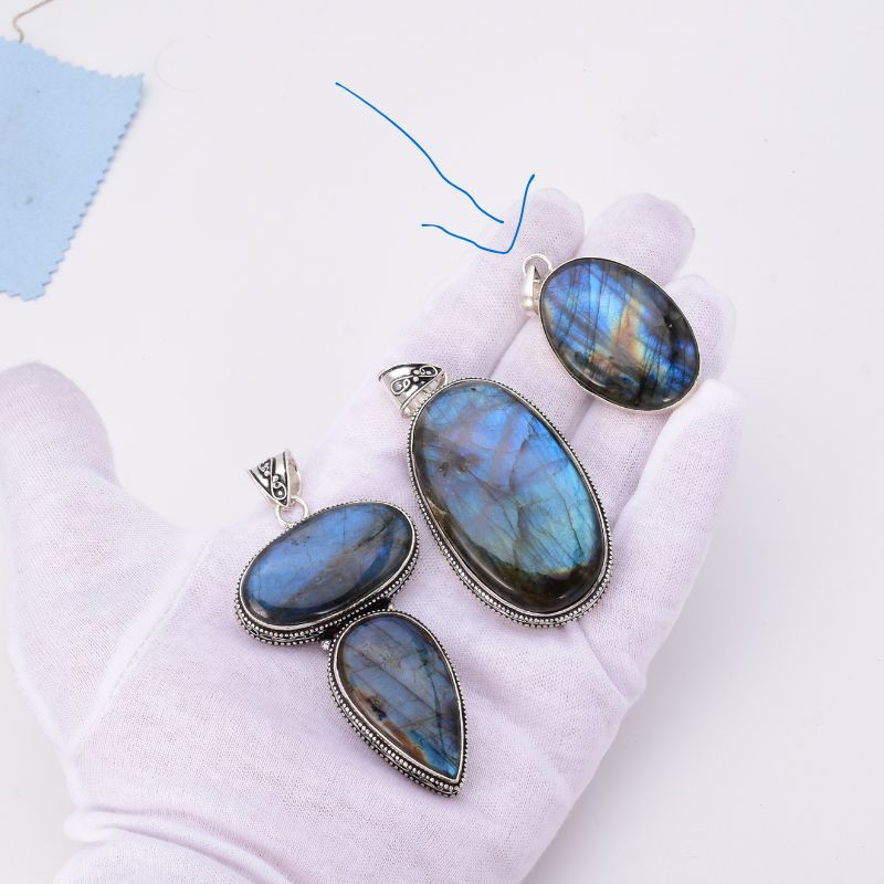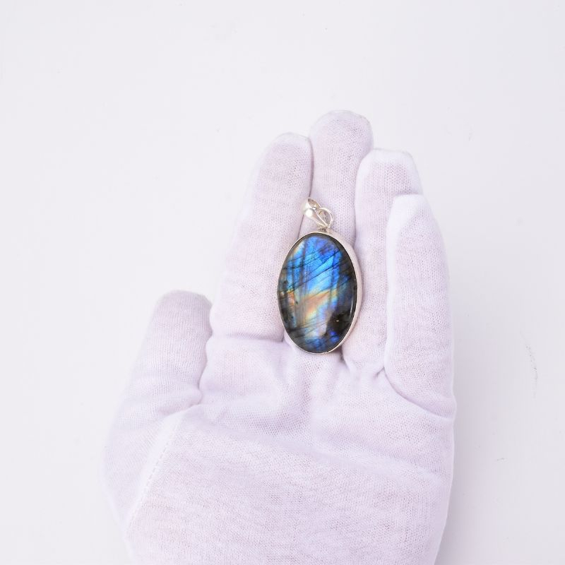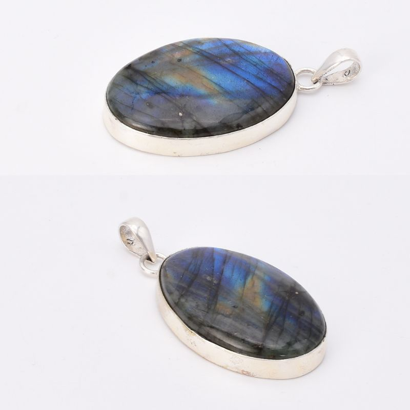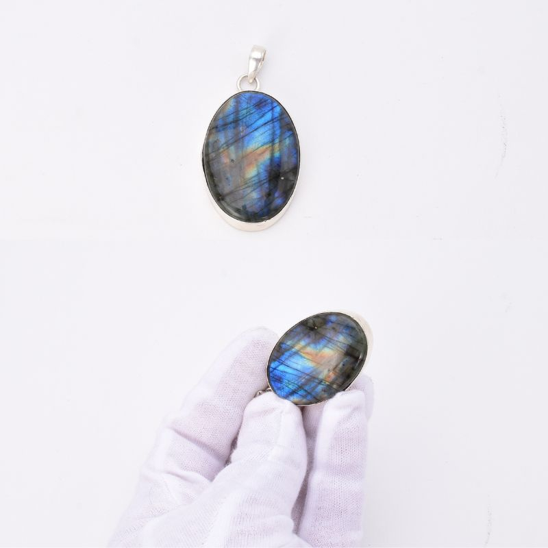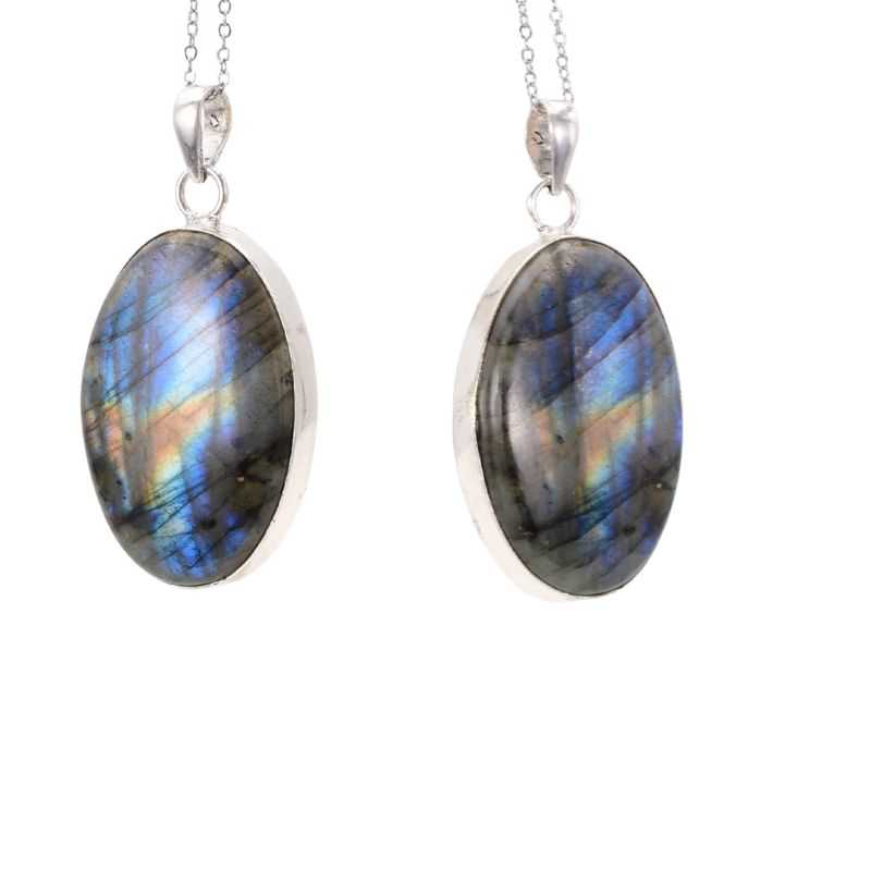 Reflexe de Apus Arctic este un pandantiv cu labradorit din argint 925 lucrat manual in India. Piatra de labradorit, cu reflexii spectaculoase de albastru și portocaliu, amintește de un un dans de lumină între gheață și foc.