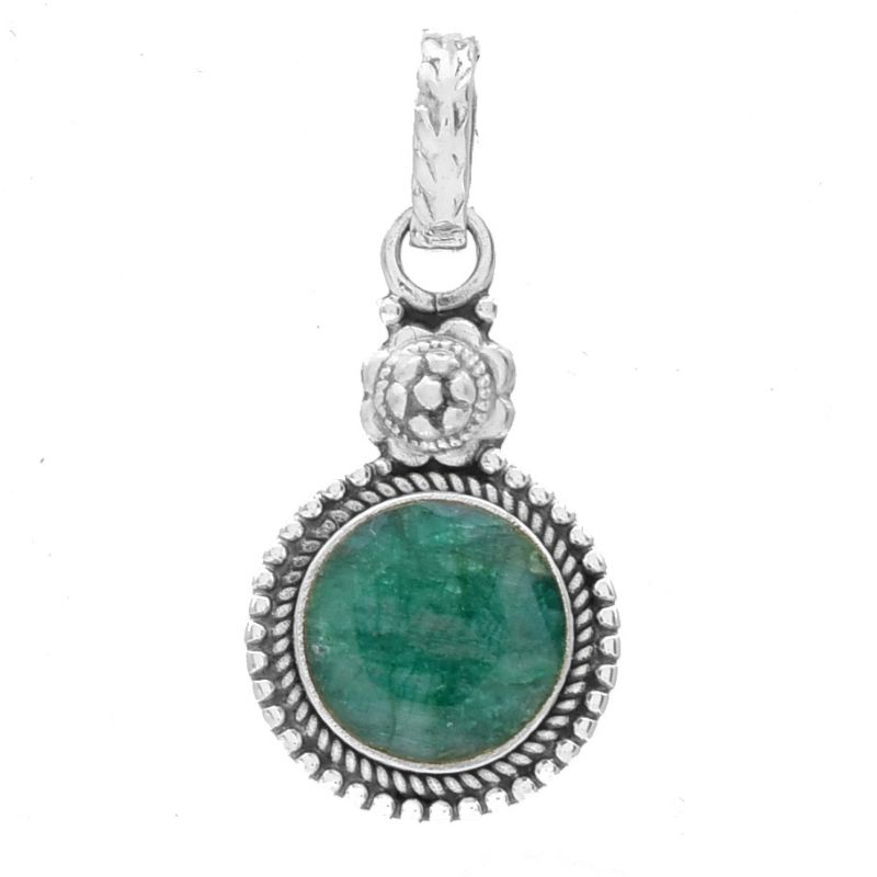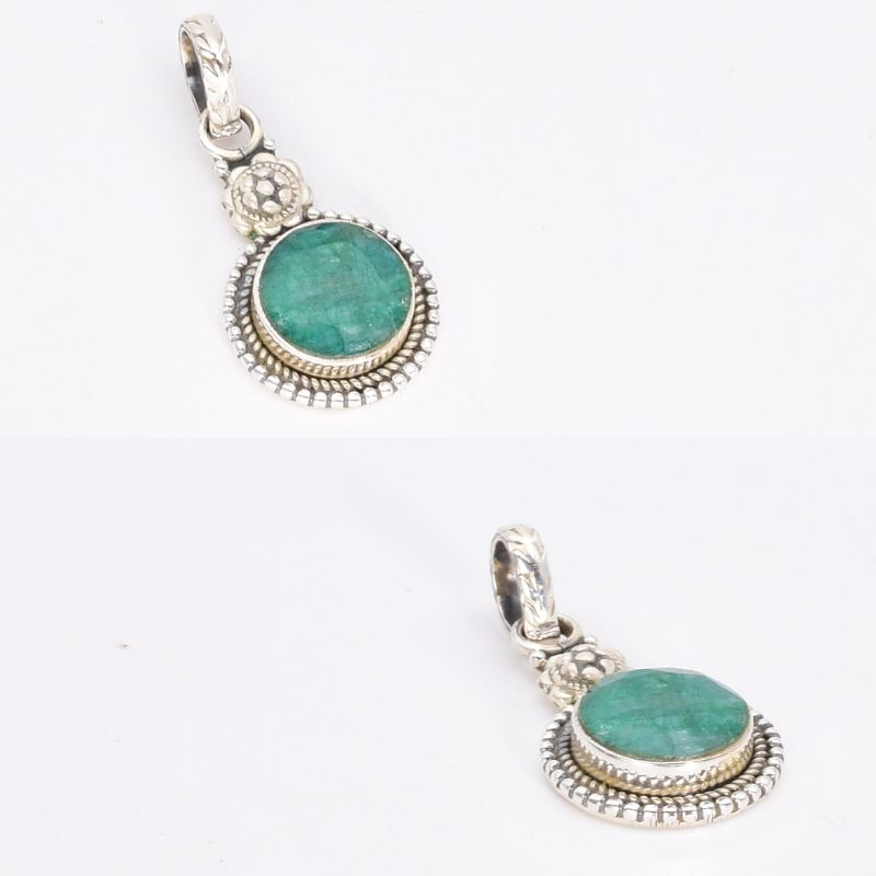Pandantiv cu smarald rotund din argint 925 realizat manual in India.