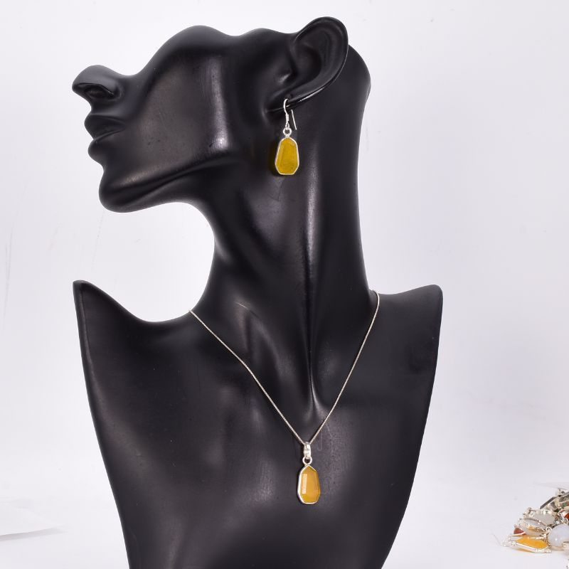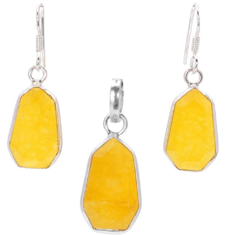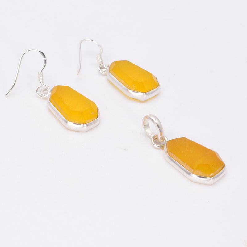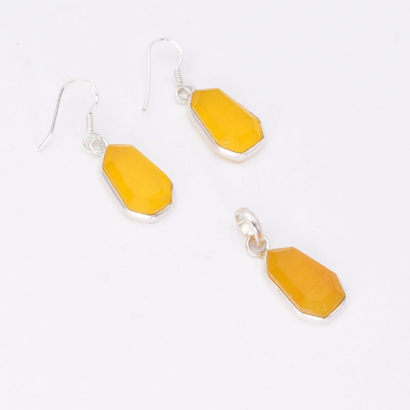 Set de argint cu jad galben, fațetat - cercei si pandantiv (fără lanț).