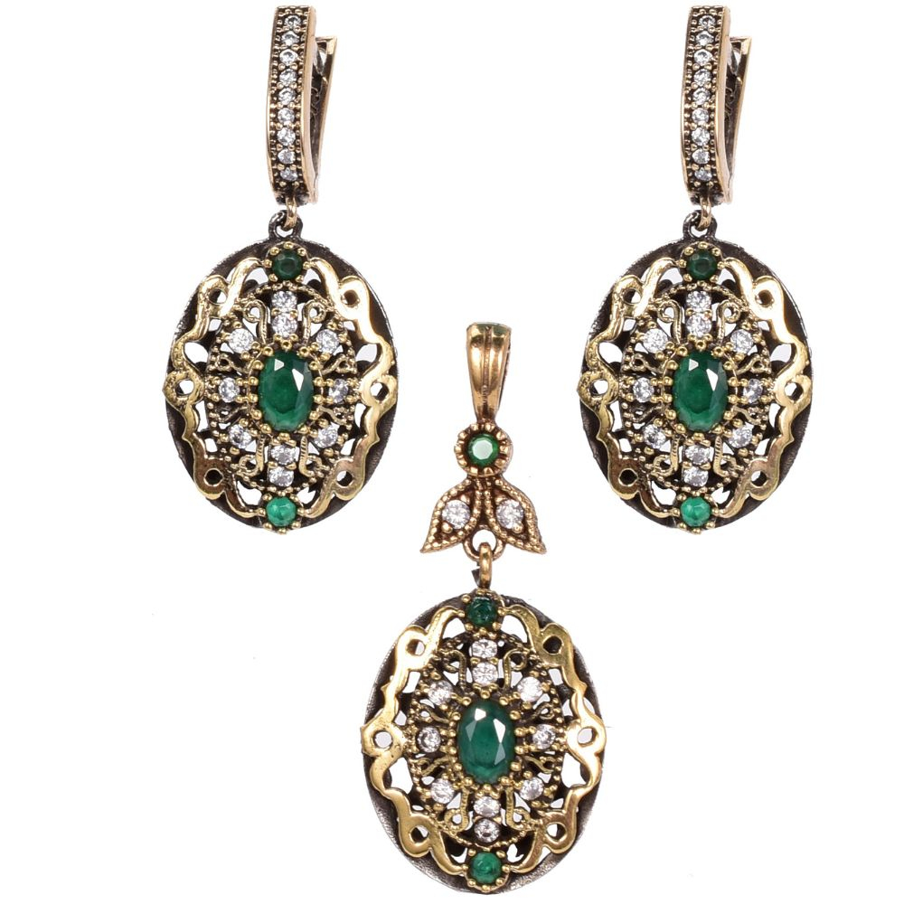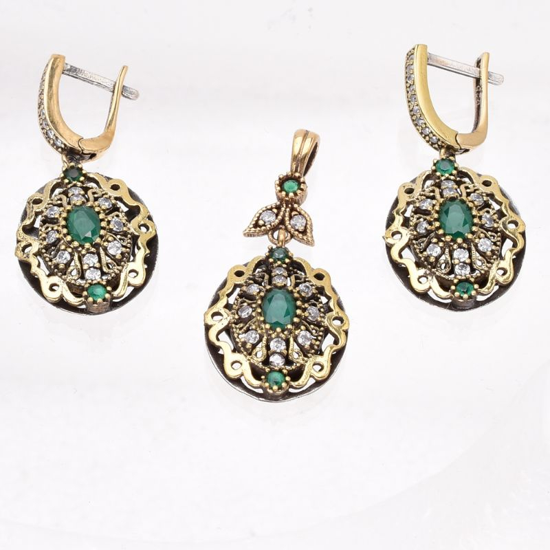 Pietrele CZ verzi si albe montate manual cu o măiestrie desăvârșită, creează un efect vizual captivant. Ele amintesc de rafinamentul bijuteriilor purtate în epoca palatelor otomane.